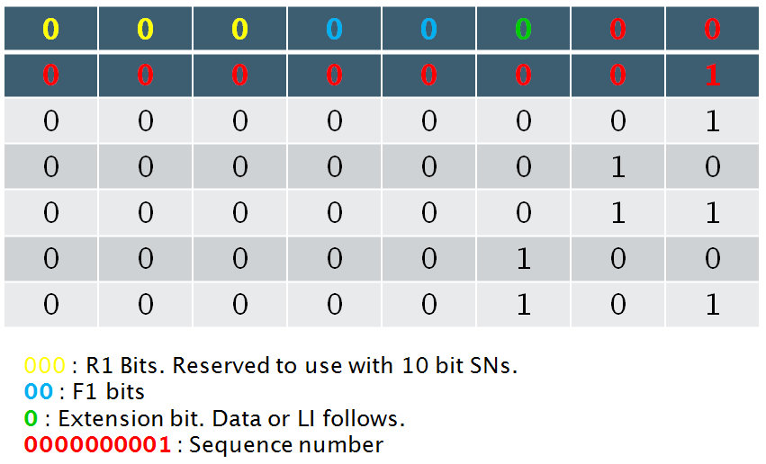 Sequence Number (SN) Length: 5 bits